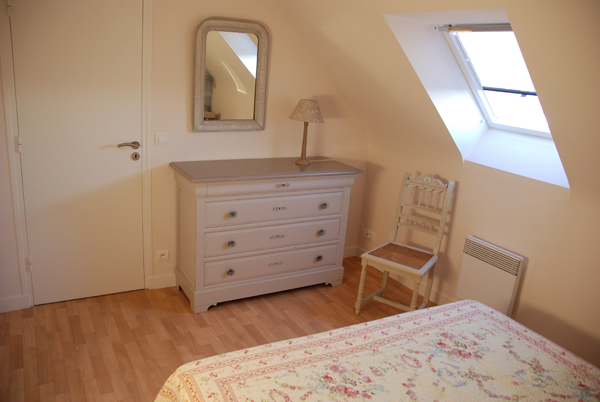 La chambre, avec ses meubles anciens et son lit douillet de 160x200cm, lui confèrent une ambiance à la fois cosy et confortable.