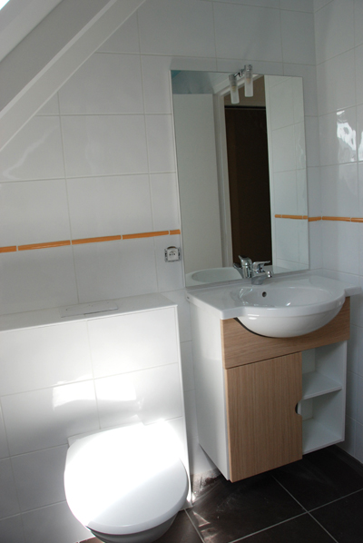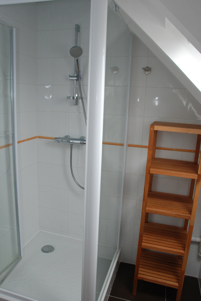 L'appartement possède une salle d'eau à la fois moderne et fonctionnelle : douche, radiateur sèche-serviettes soufflant.